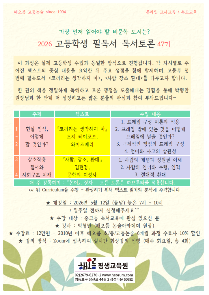 특히 고등 단계에서는 개념과 구조를 다루는 사회과학 도서 읽기가 출발점이 되어야 합니다^^