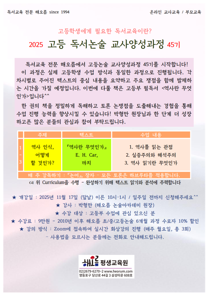 해오름에서만 들으실 수 있는 강의!